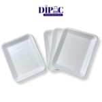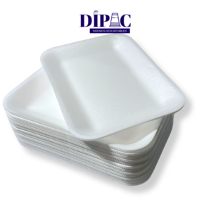 Bandeja de poliuretano expandido (EPS) de alta resistencia, medida 15 x 20 cm. El tamaño estándar para feteados y porciones medianas. Presentación en bolsón cerrado por 400 unidades.