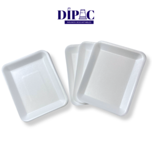Bandeja de poliuretano expandido (EPS) de gran formato, medida 18 x 22 cm. Ideal para porciones familiares, carnes y productos de volumen. Presentación en bolsón cerrado por 400 unidades.