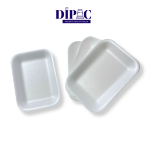 Bandeja de poliuretano expandido (EPS) de alta densidad, medida 14 x 19 cm. Formato rectangular versátil para el despacho diario. Presentación en bolsón cerrado por 400 unidades.