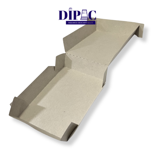 Caja de cartón gris estándar para medio kilo de ravioles. Medida cerrada de 19 x 12,5 x 4 cm. La solución clásica, económica y funcional para fábricas de pastas y rotiserías.