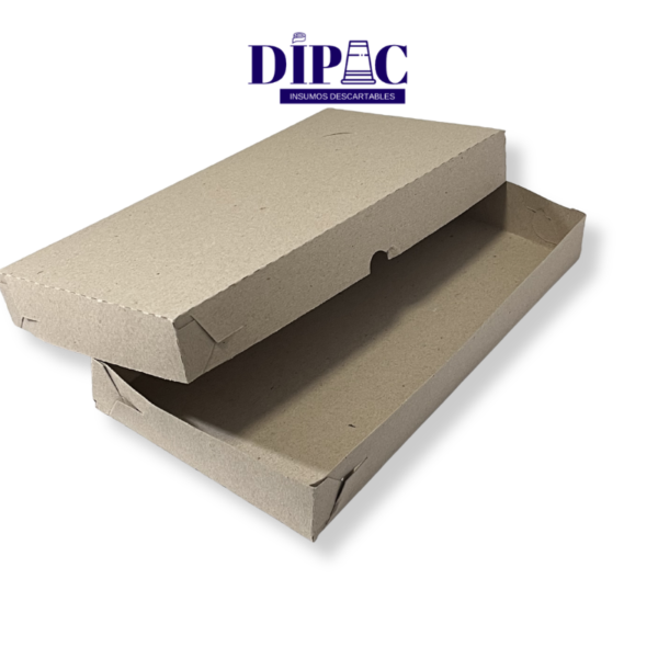 La solución más rentable para porciones y medias pizzas. Este Pack de 100 unidades de Caja de Cartón Gris (Base y Tapa) ofrece un diseño funcional de 32x17x4 cm, ideal para despachos rápidos de mostrador donde se busca el costo de packaging más bajo sin perder prolijidad.
