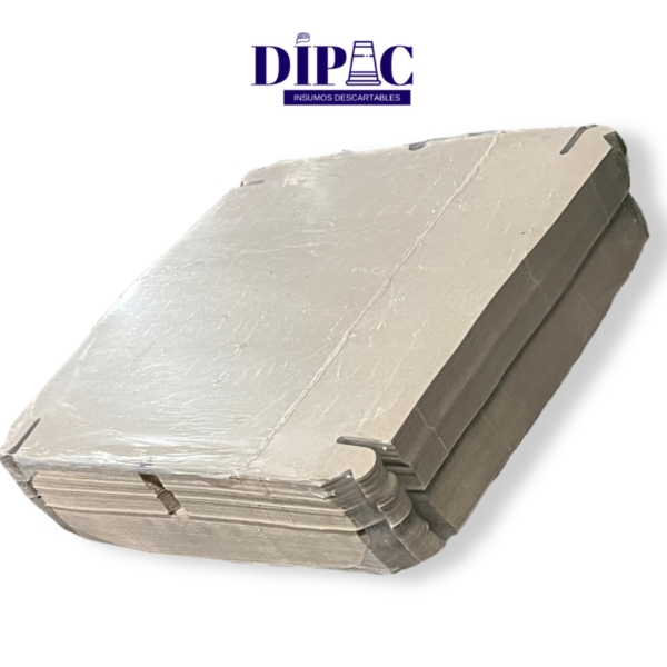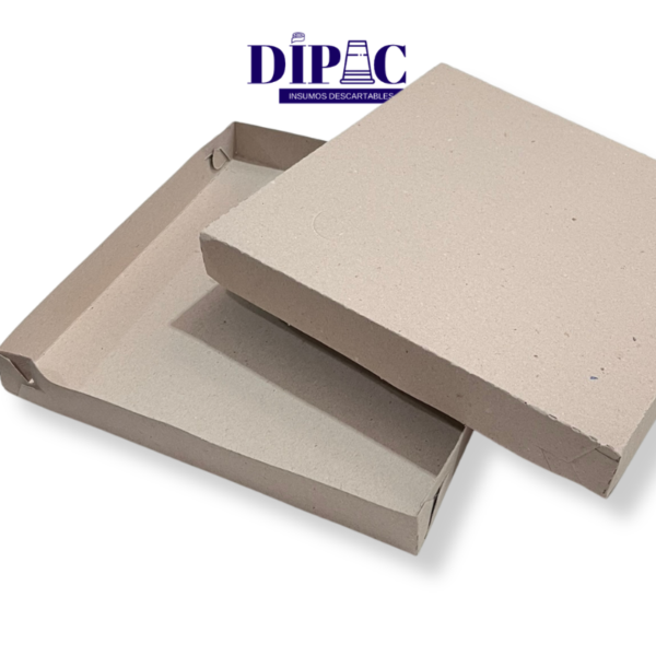 La Caja de Pizza Etiqueta Verde es el envase básico y funcional para pizzerías de alto volumen. Fabricada en cartón gris liviano, ofrece un sistema de dos piezas (base y tapa) que agiliza el armado en mostrador. Es la medida estándar para la pizza de 8 porciones, proporcionando una solución de bajo costo para el delivery inmediato.