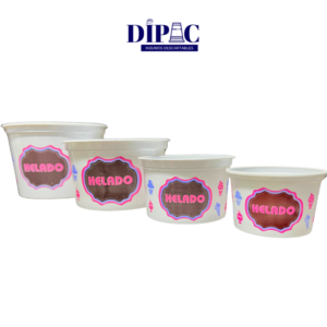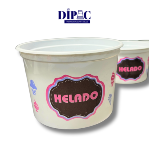 Potes plásticos impresos para helado, resistentes y con un diseño atractivo que realza la presentación. Disponibles en varios tamaños para adaptarse a todas tus necesidades.